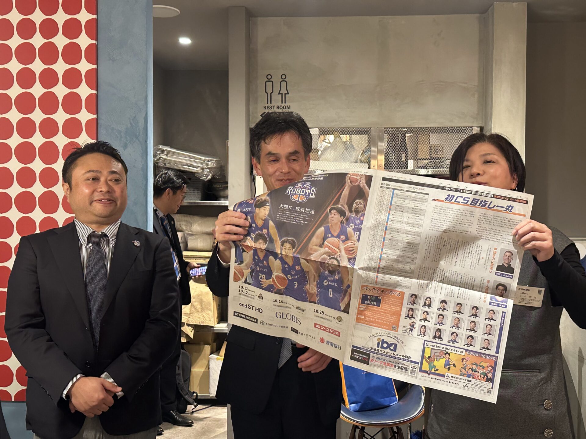 「クラブは10年前4,000万円からスタートし、現在の売上は14億円をちょうど超えたところです。茨城の地において皆様のお力をお借りしながら私たちがさらなる成長に向けてどれだけ頑張れるかをしっかりと示していくことだと考えています。スポンサー企業の皆様へのお返しとして最も重視するのは、関係性の濃さであり、ロボッツの役割はクラブがコミュニティとして機能しビジネスとビジネスを繋ぐことです。様々な機会を創出し若手の育成やビジネスへの貢献を行います。試合会場で全員が喜怒哀楽を共有しファミリーとして一緒に成長できることも役割です。この成長の輪を広げる鍵はテレビ局がない茨城において一番大事な口コミです。皆様には一緒にこのクラブを経営していく仲間としてご一緒いただきたいと考えています。」と語り、ご参集いただいた19社のスポンサー企業の皆様への感謝と、パートナーシップの重要性について熱いメッセージを述べました。