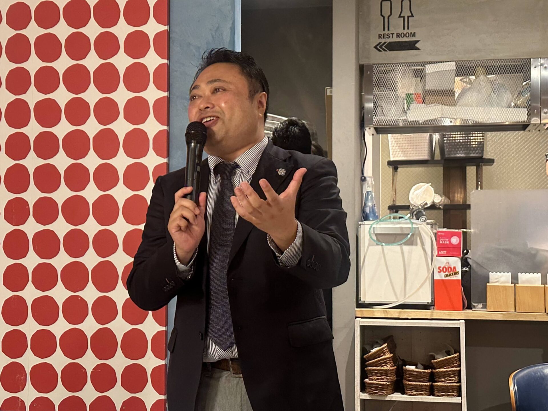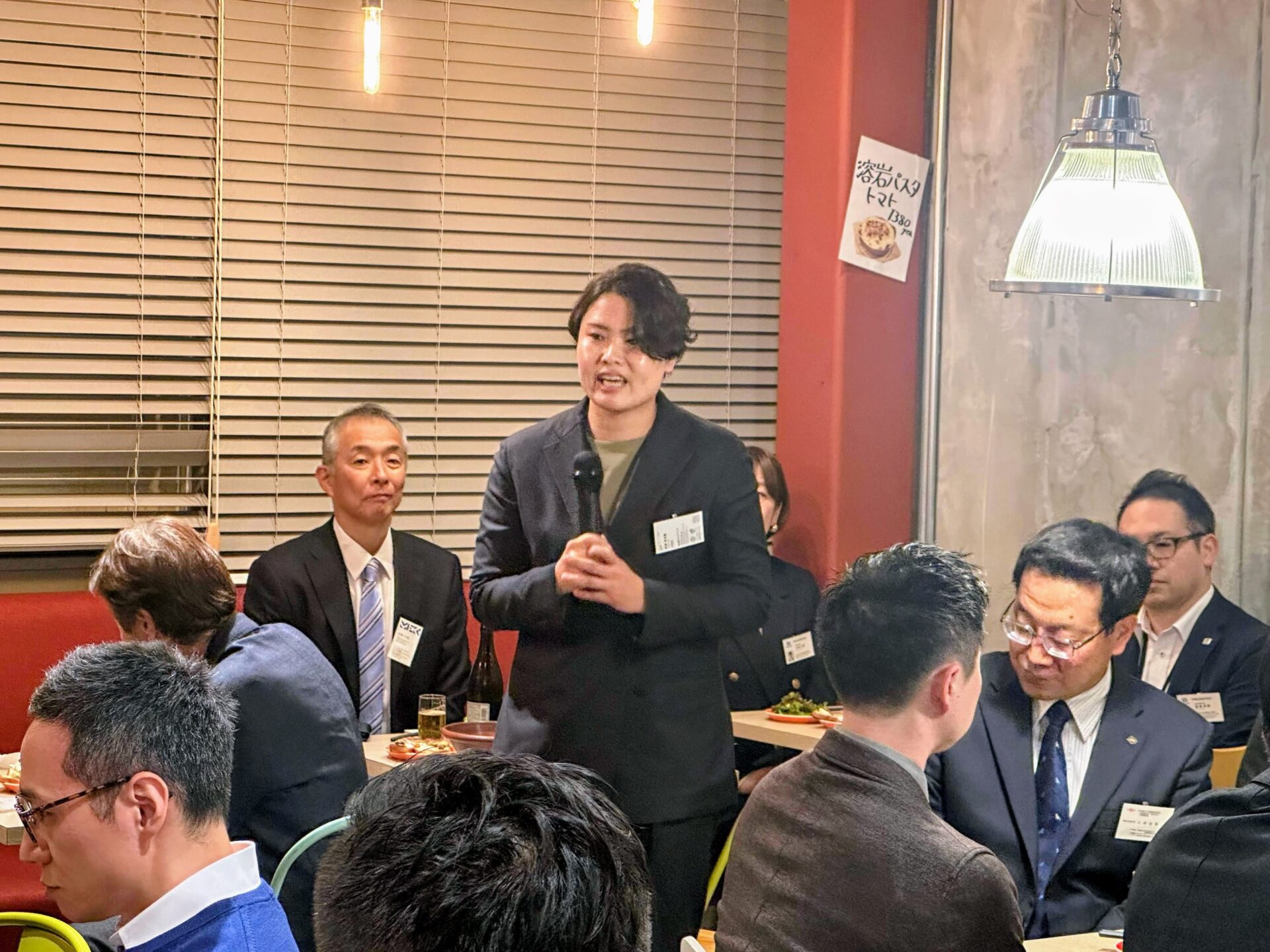 本交流会を「巻き返しを図るための決起集会」と位置づける弊社代表・川﨑 篤之の力強い挨拶で、初めての交流会は幕を開けました。